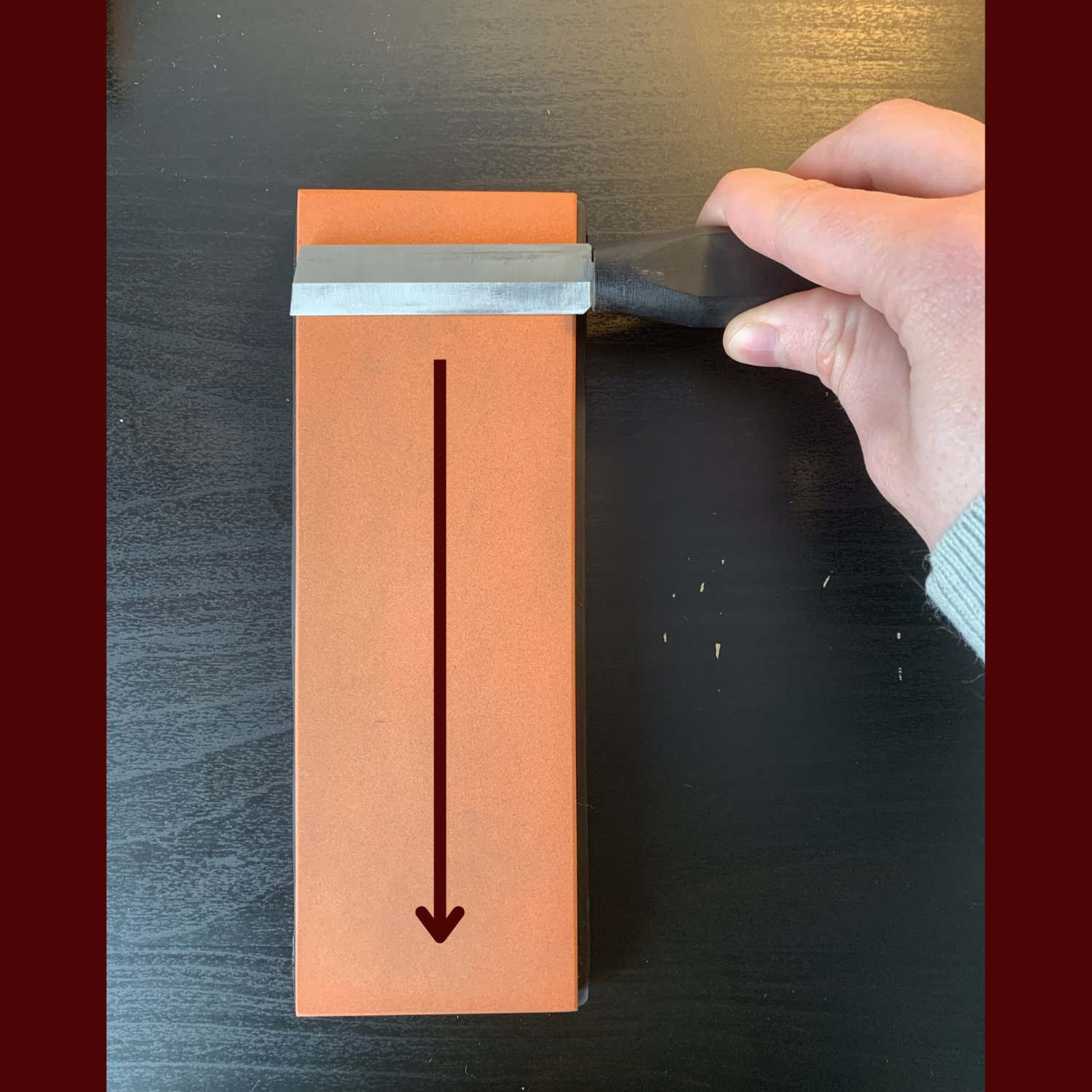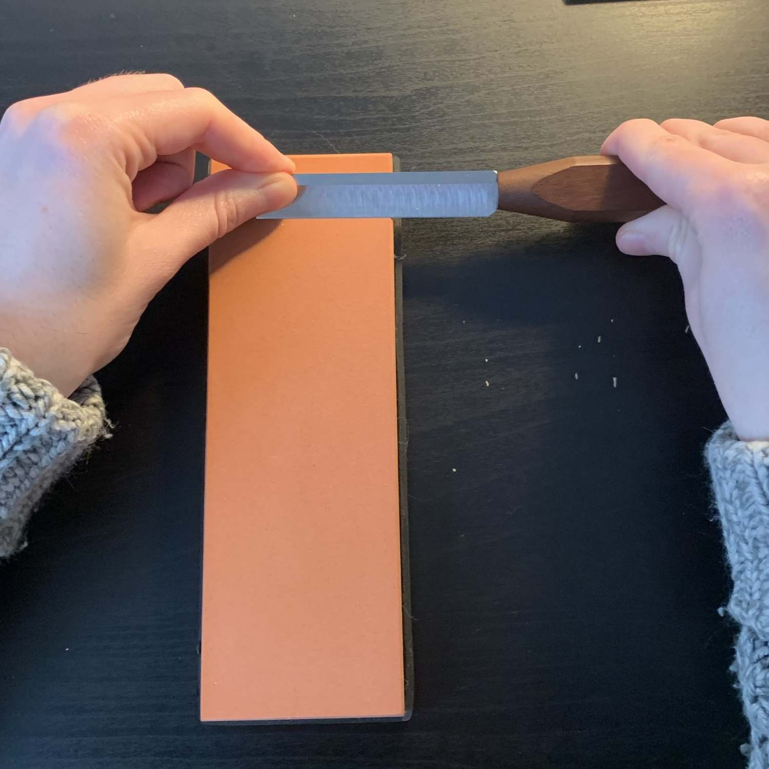 As always, when working with tools, please use caution. Be sure to sharpen knives in a controlled environment, and make sure your sharpening stone is secured to your working surface before sharpening to prevent slips.