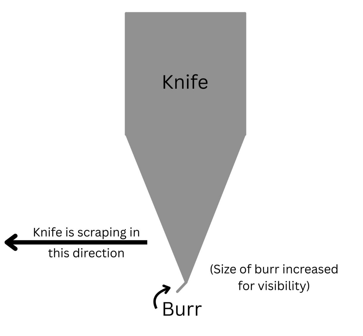 In order to create a great burr, it is necessary to create a smooth, straight cutting surface first. This initial step involves running both sides of your knife over the sharpening stone to remove the old, damaged burr, as well as ensuring the angles on both sides of the knife are restored. After both edges of the knife have been honed and smoothed, the burr can be created.