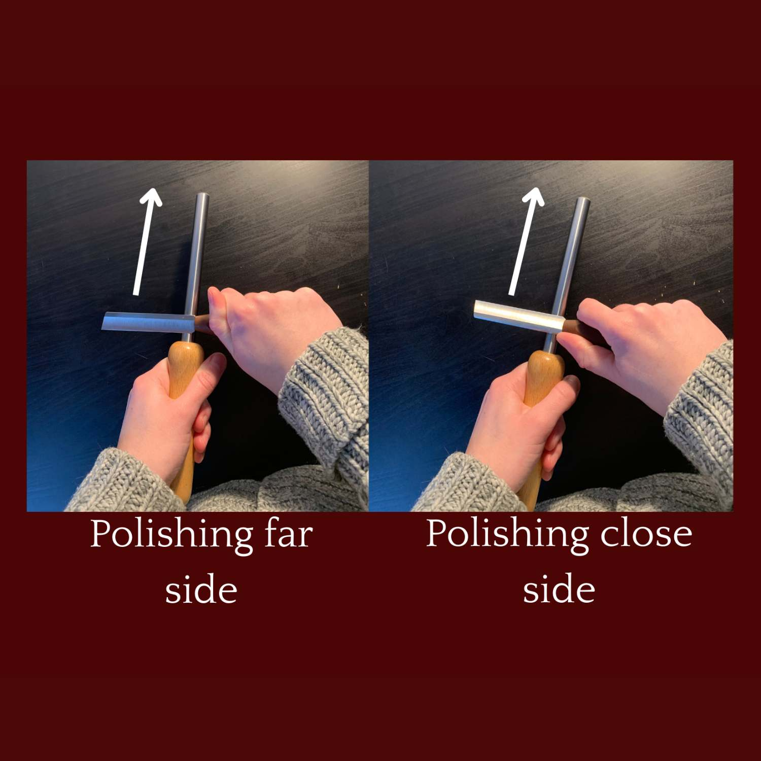 As it is being used as the final step, it’s important to note that the sharpening steel does not remove any metal from the knife. For this reason, the sharpening steel MUST be smooth steel, with no abrasion whatsoever. Many kitchen supply stores sell sharpening steels, but most of them are abrasive and therefore will not work for reed knives.