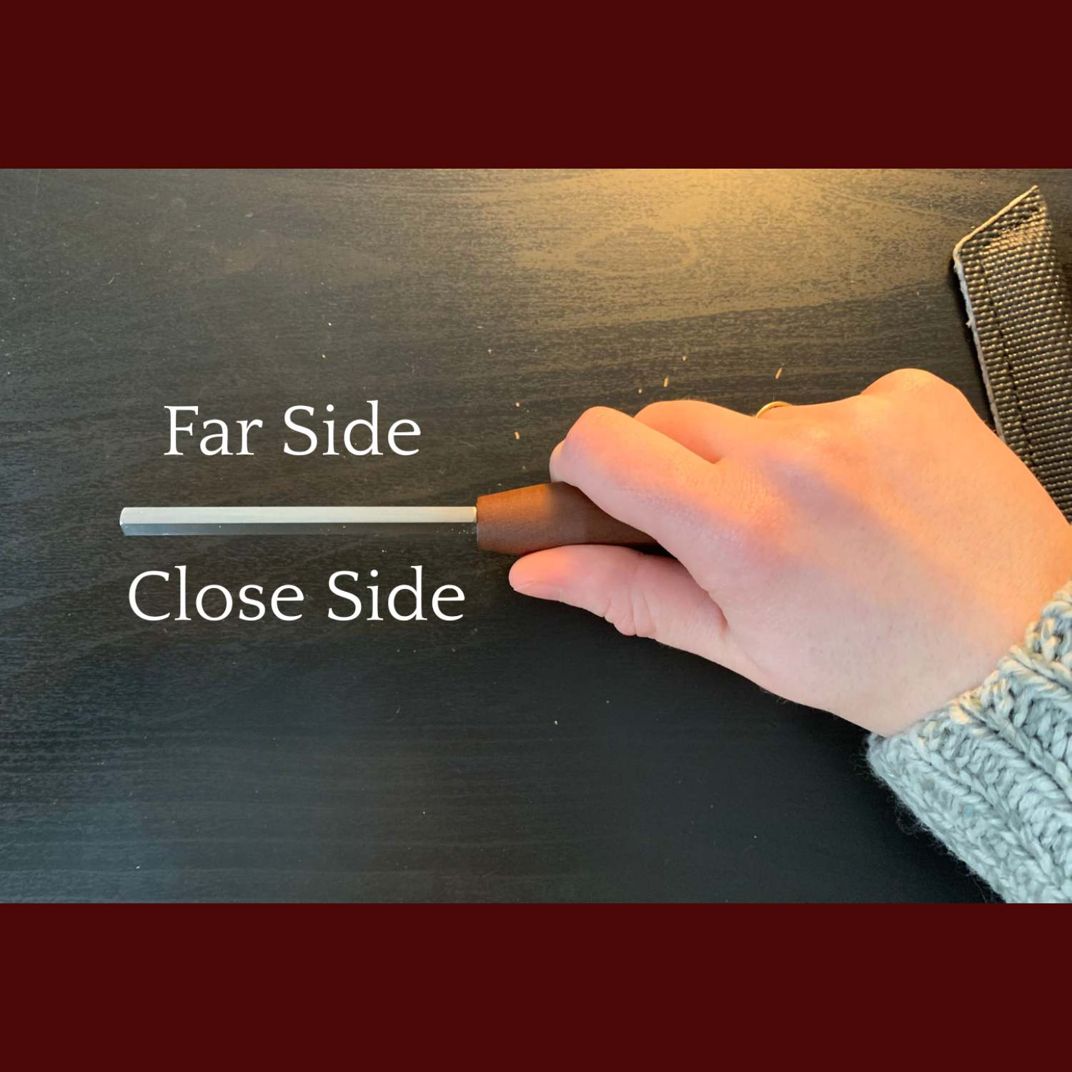 2. Determine the far side and the close side of your knife. The far side is the side that faces away from you when scraping, and the close side is towards you.